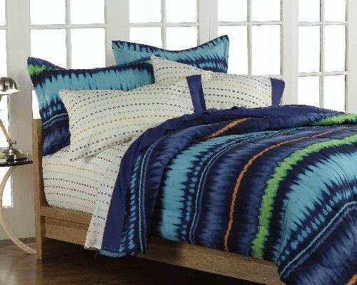 - Retro chic comforter set features a striped tie dye design in bold shades of blue, orange and green.